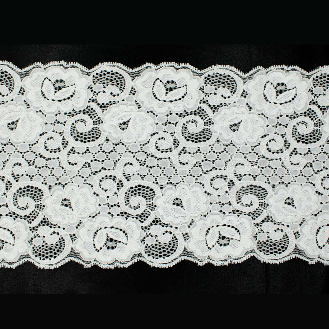 Light Grey Floral Stretch Raschel Lace Trim 150mm