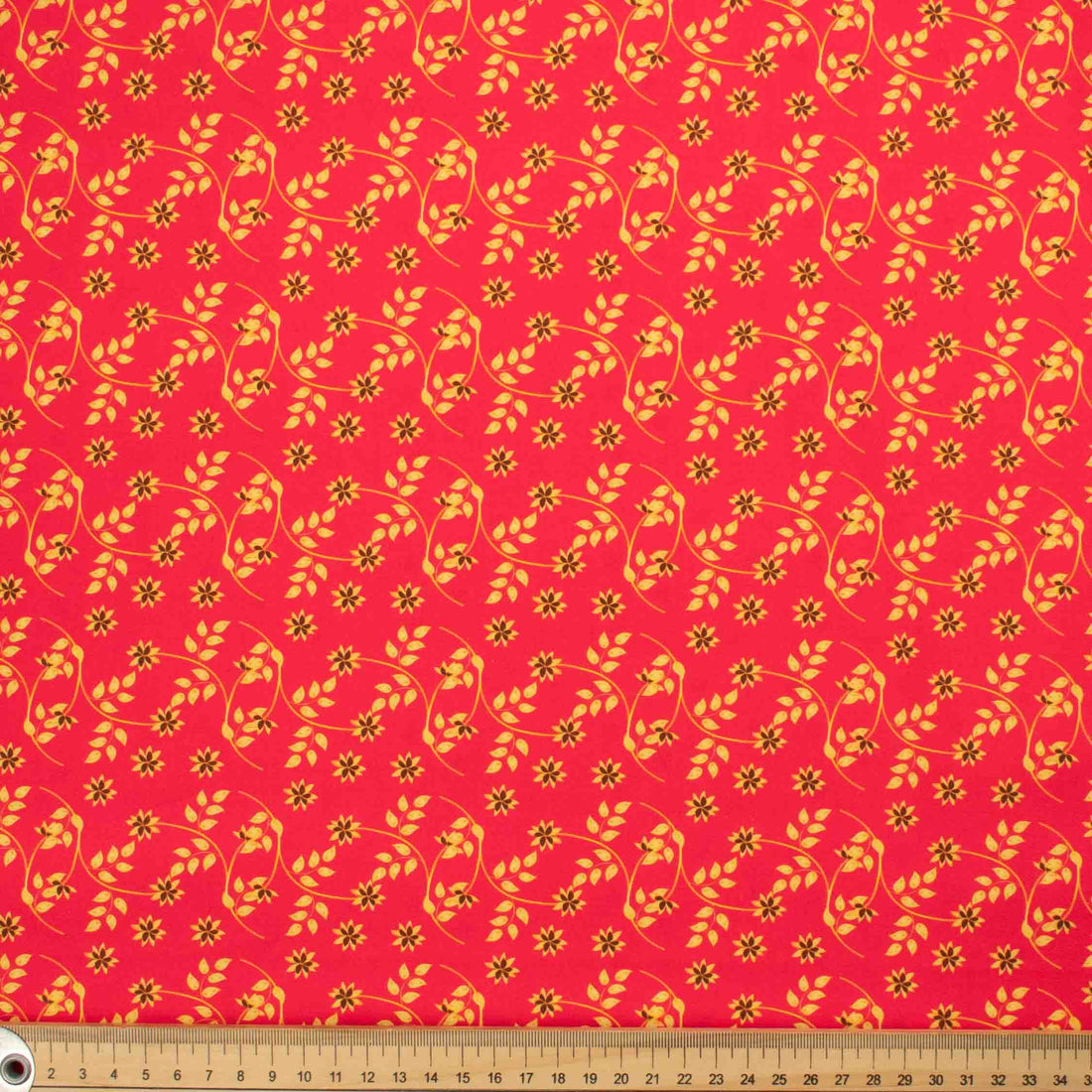 Ruby Red Collection #14 Yellow Leaves & Floral on Red Cotton Prints