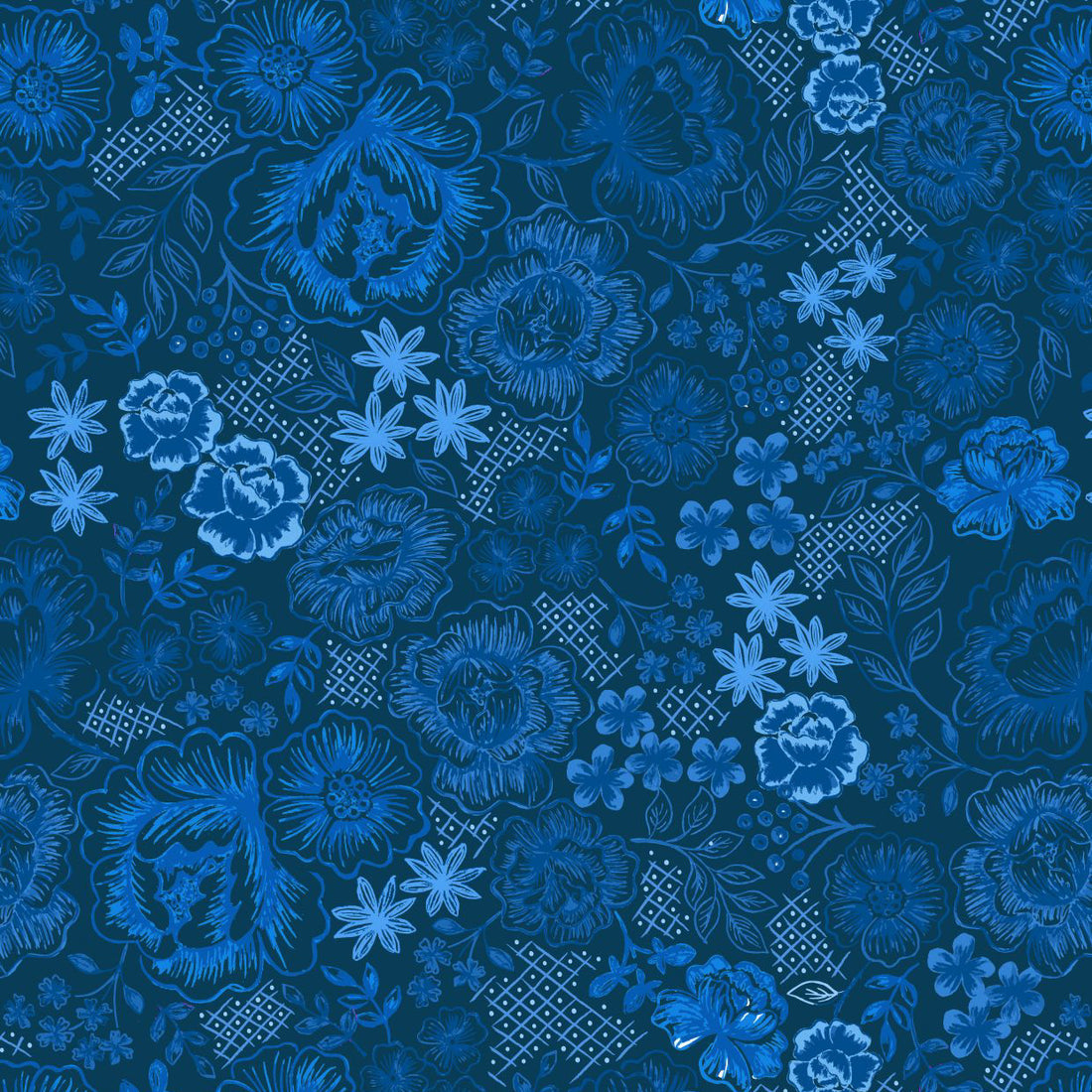 Lewis & Irene Floral on Darkest Blue Cotton Prints