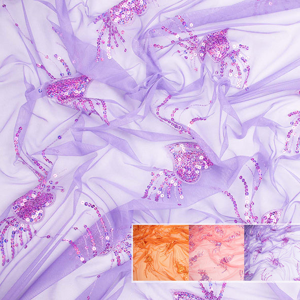 Content: 100% PolyesterWidth: 130cm An embroidered sequin on a soft tulle mesh open background. Reminiscent of...
