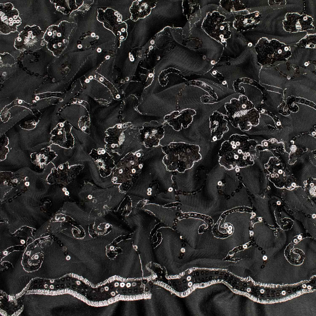 Light Sequin Tulle Lace Black Design-2
