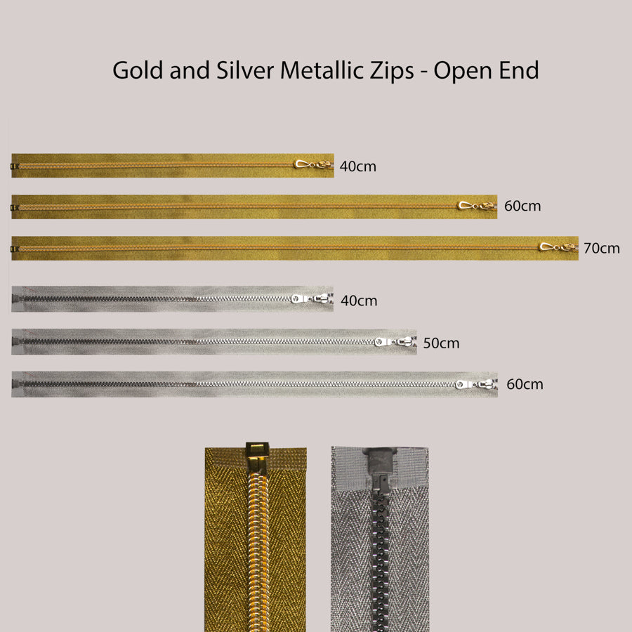 A luxurious look metallic close ended zipper to add a touch of elegance and individuality...