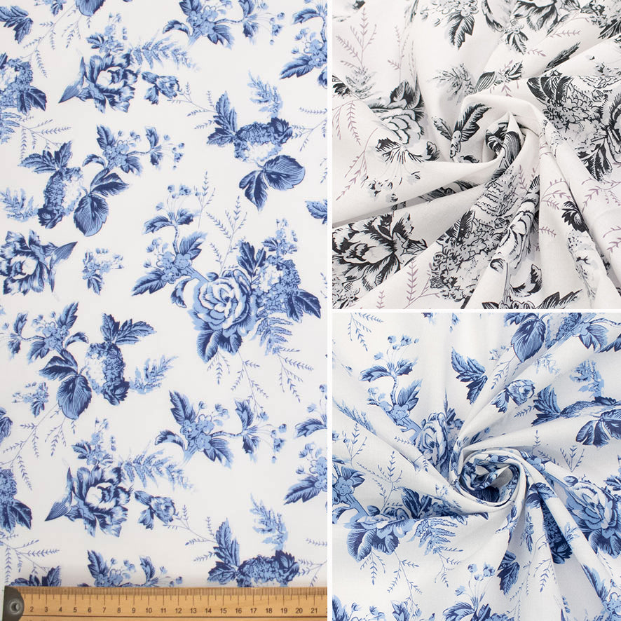 Rayon Poplin Prints Design 33 Black & Grey Florals