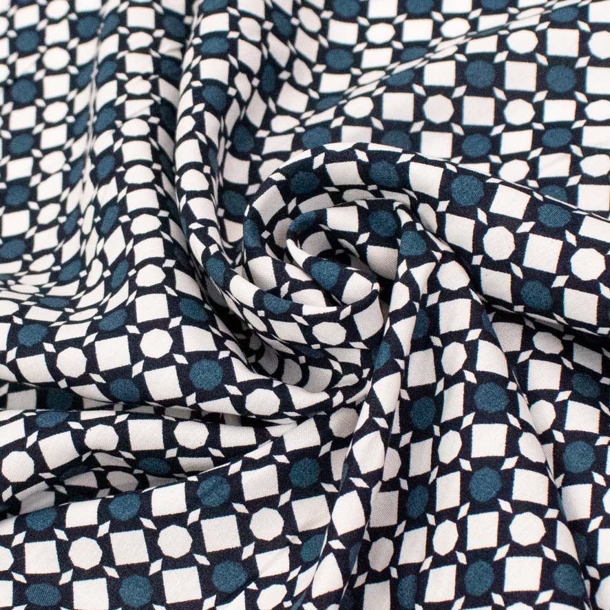 Rayon Poplin Prints Design 23 Teal Dots and White Squares