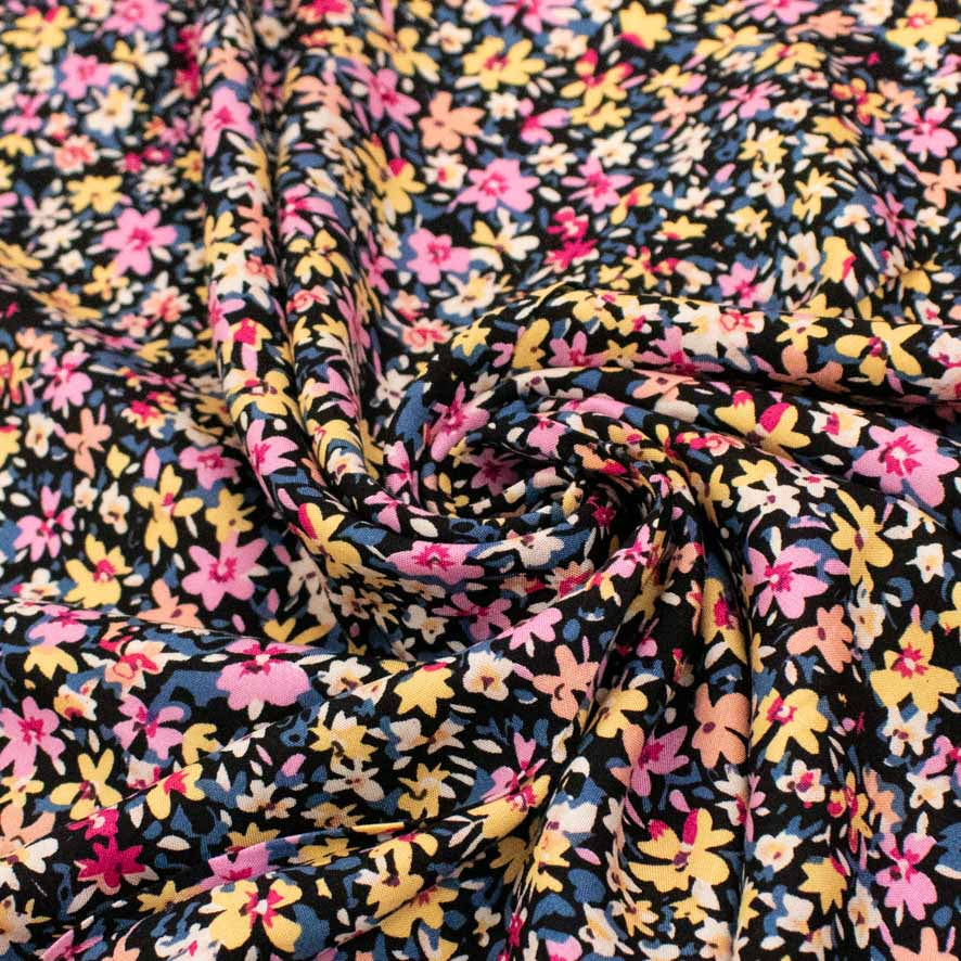 Rayon Poplin Prints Design 17 Pink & Yellow Vibrant Flowers