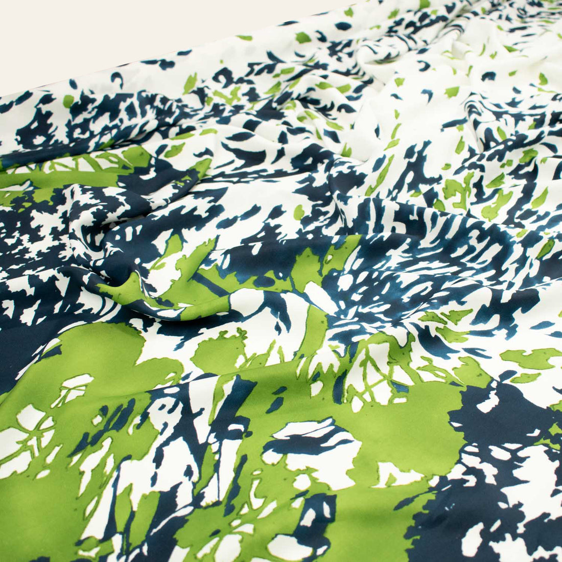 Fenina Crepe Prints Design-2 Green & Navy Abstract on White