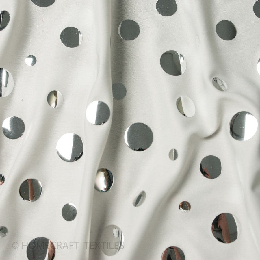 Content: 100% Polyester Width: 150CM Weight: 130GSM Spangle lycra with sequin dot. Ideal for making backdrops as...