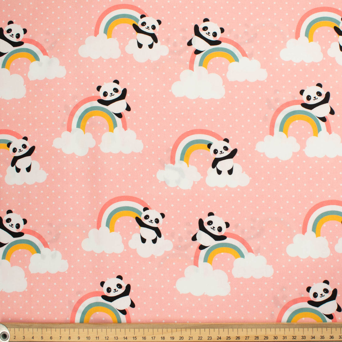 Panda Collection #06 Rainbow Pandas & white Dots on Pink Cotton Prints