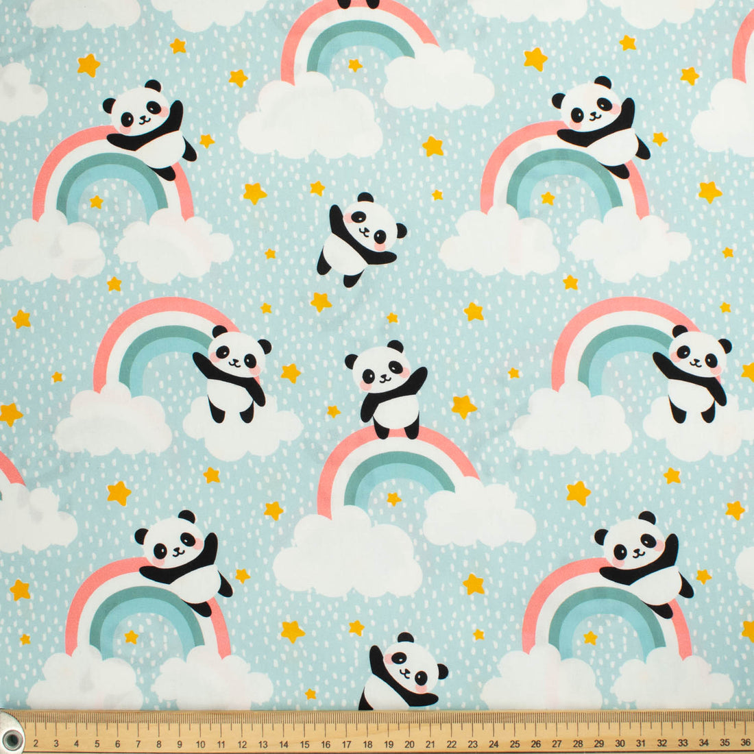 Panda Collection #05 Star, Rainbow & Pandas on Blue Cotton Prints