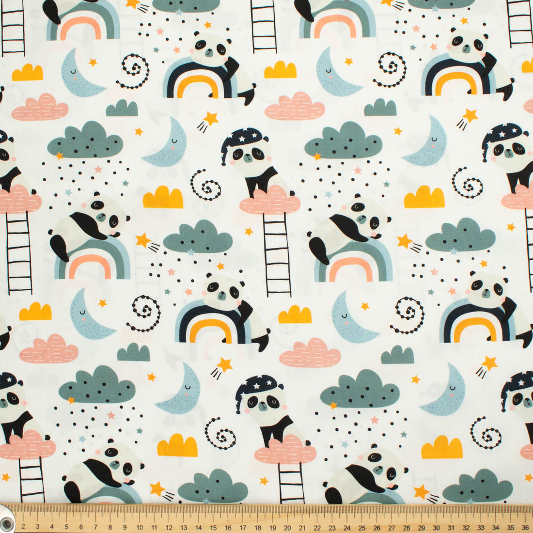 Panda Collection #03 Moon, Cloud, Rainbow & Pandas on White Cotton Prints