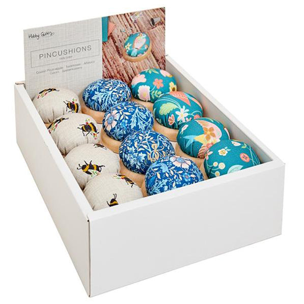 Fabric Dome Top Pincushion with Wooden Base – Assorted Designs