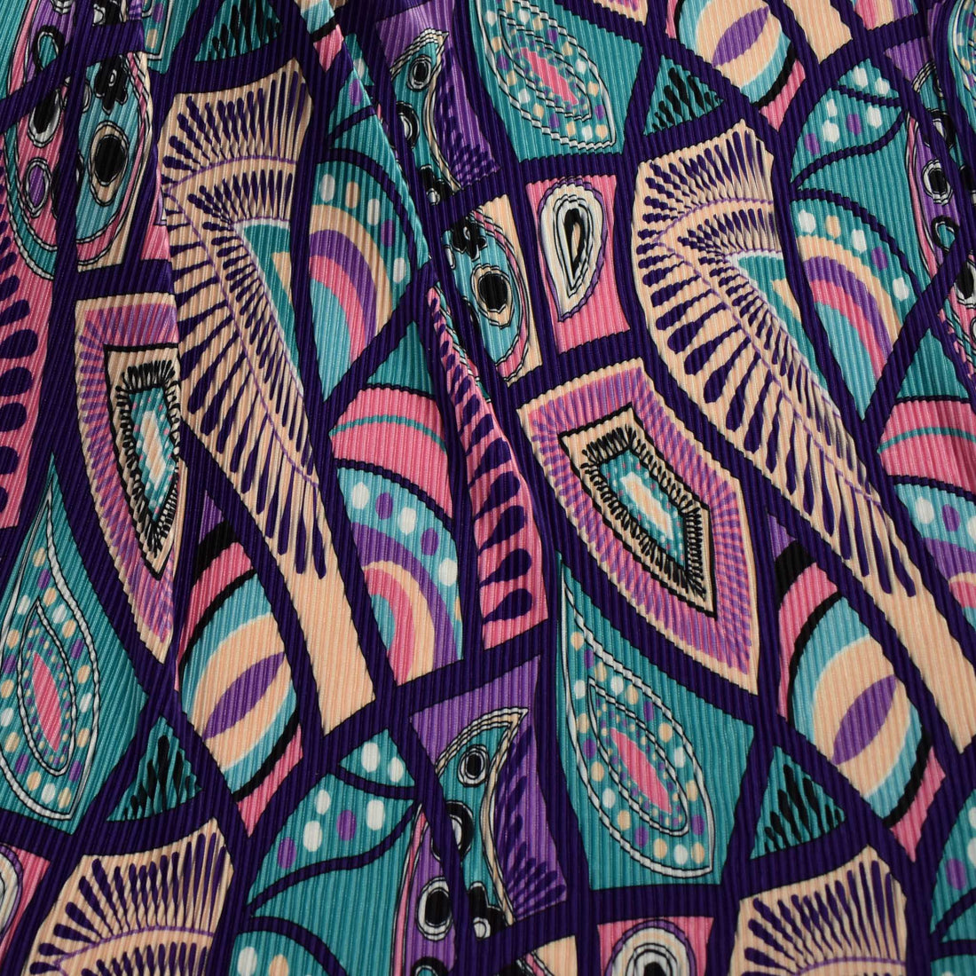 Width: 145cm A pleated and gathered Picasso poly blended rayon/ polyester print. A finely pleated...