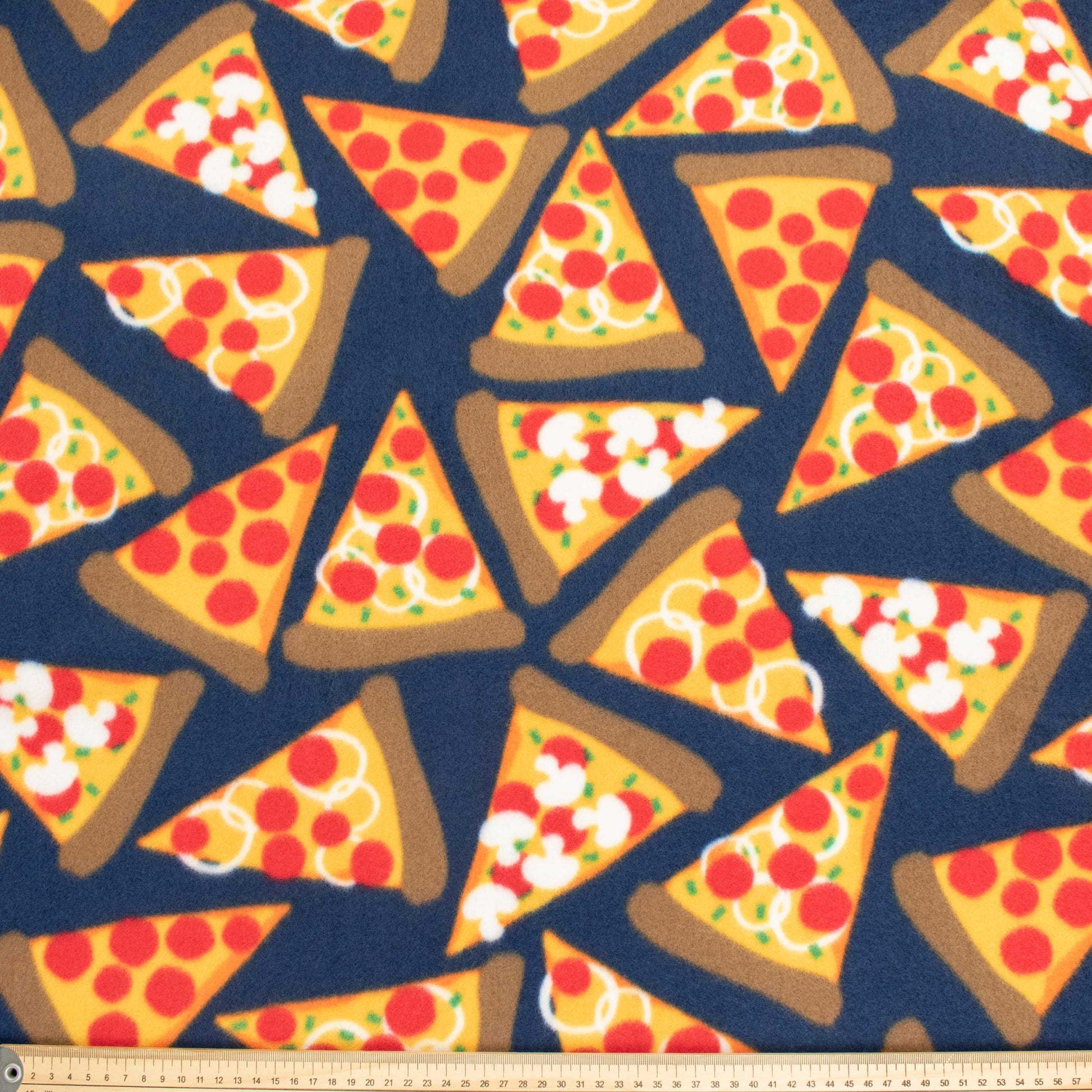 Pizzas on Navy Printed Polar Fleece Design-A58