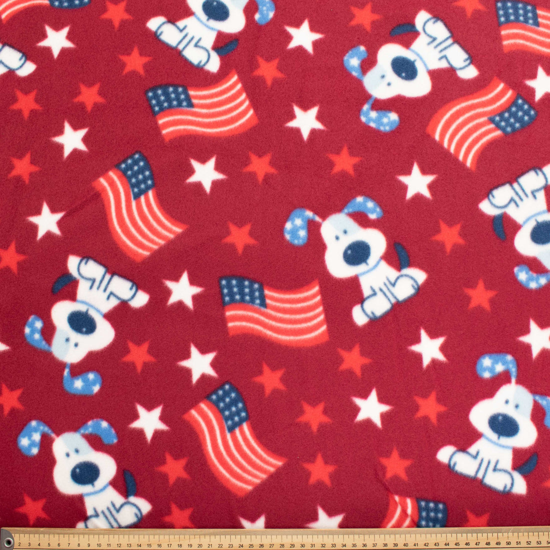 Doggie Patriotic & USA Flag on Red Printed Polar Fleece