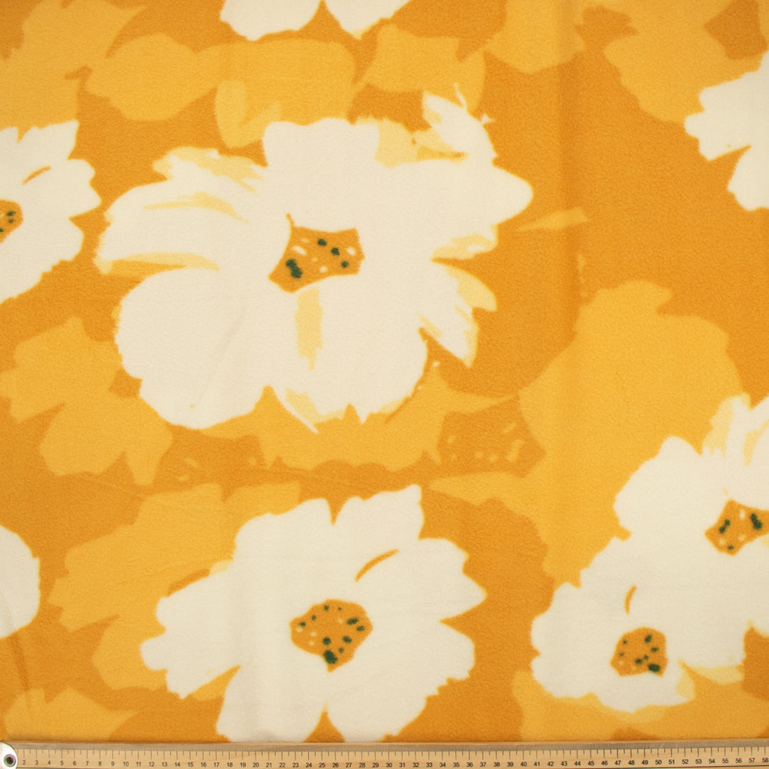 Big White Flowers on Yellow Printed Polar Fleece #2
