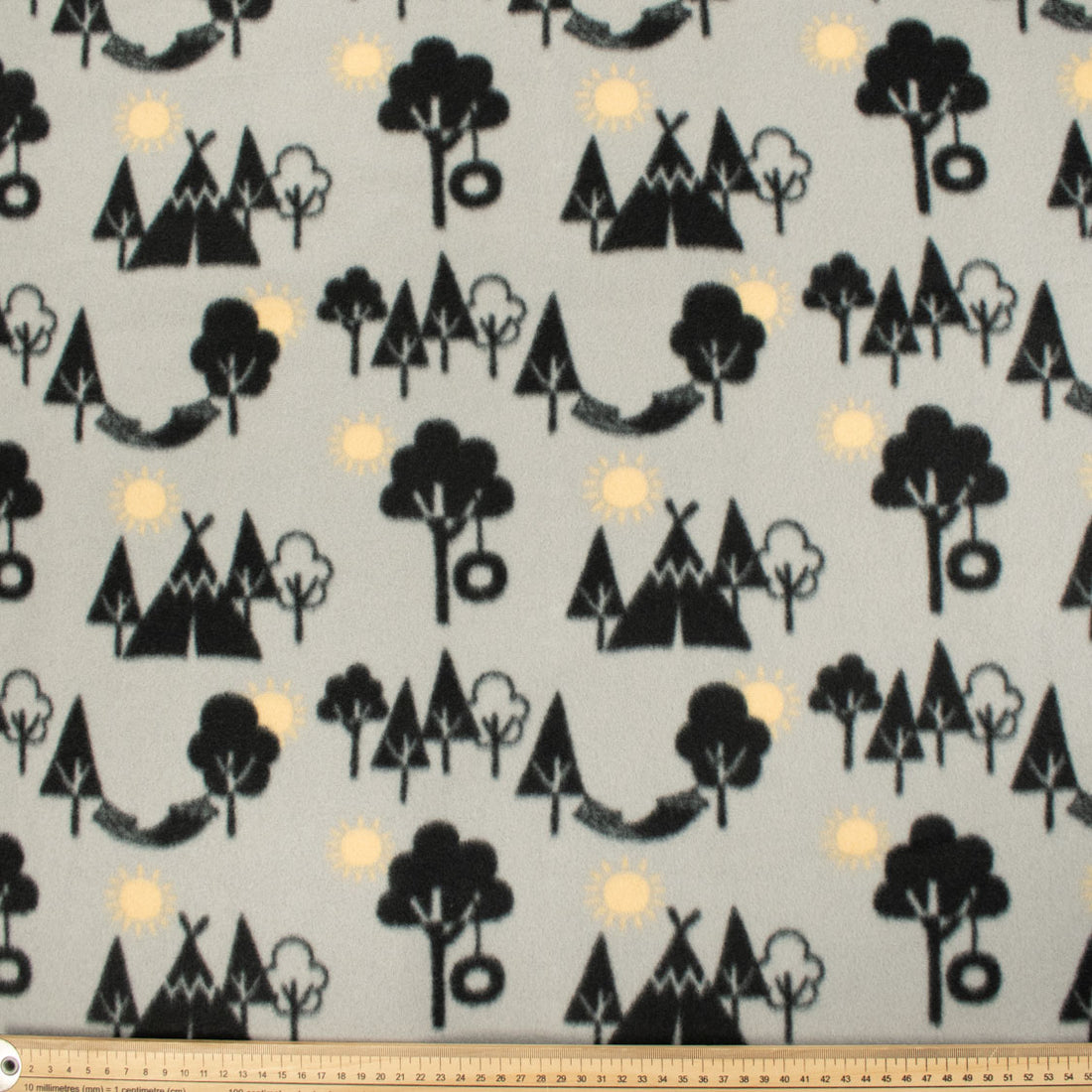 Black Camping Tents & Hammocks on Grey Printed Polar Fleece DSN #34
