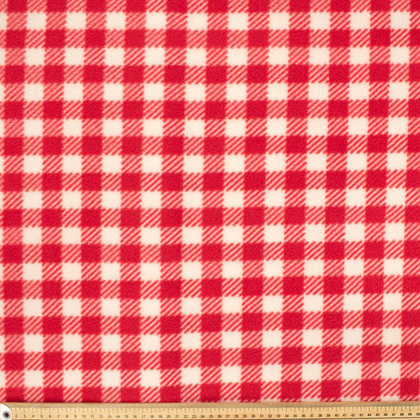 Red & White Gingham Checks Printed Polar Fleece DSN #42
