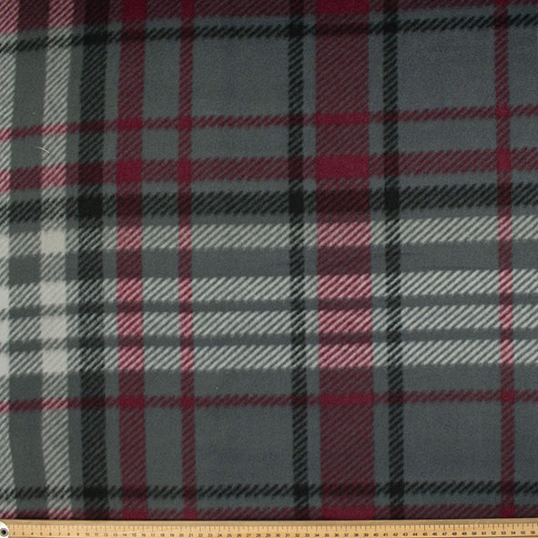 Red, White & Black Checks on Grey Printed Polar Fleece DSN #9