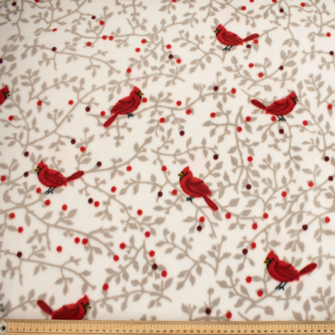 Red Birds on Grey Printed Polar Fleece Design 35