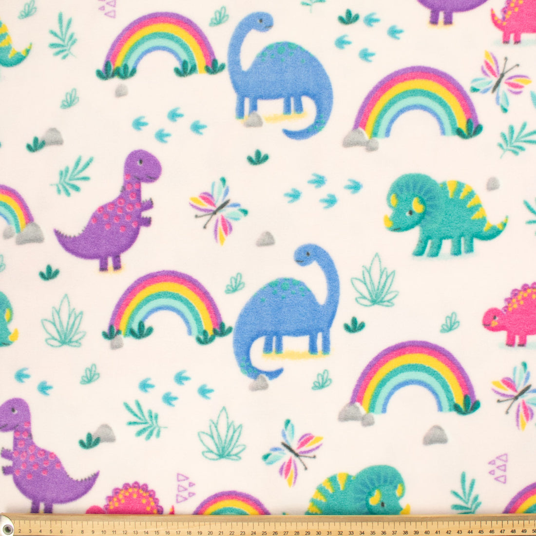 Multi Colour Dinosaurs, Butterfly & Rainbows on Ivory Printed Polar Fleece DSN #29