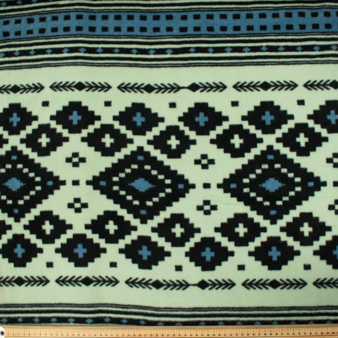 Black & Blue Geometric on Mint Printed Polar Fleece DSN #60