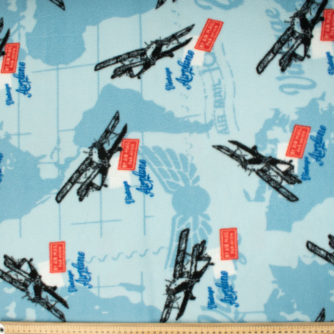 Vintage Airplanes on Blue Map Printed Polar Fleece DSN #31
