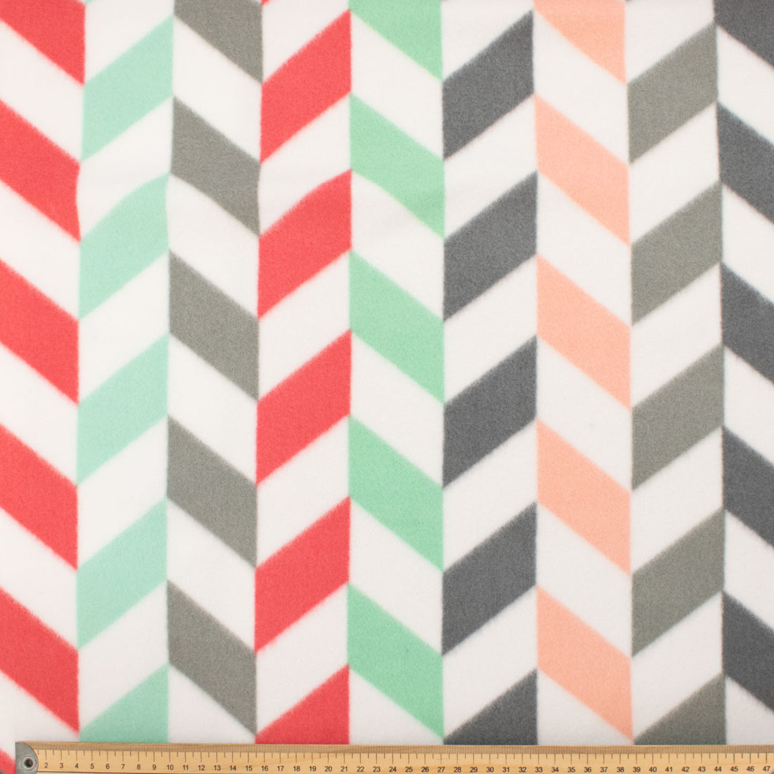 Colourful Chevron on White Printed Polar Fleece Design 30