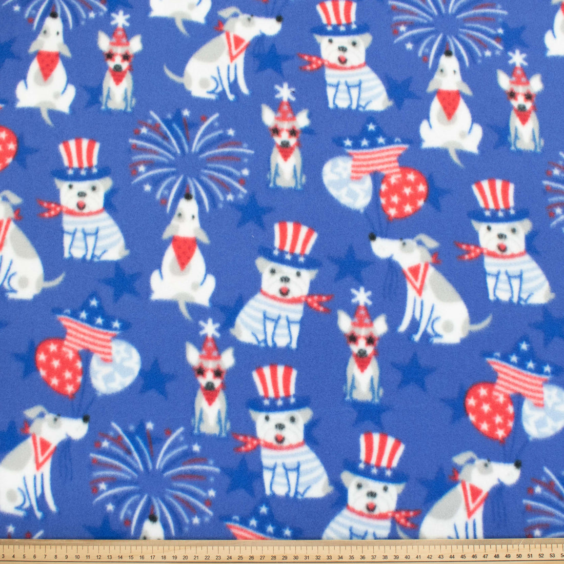 USA Patriotic Dogs on Blue Printed Polar Fleece