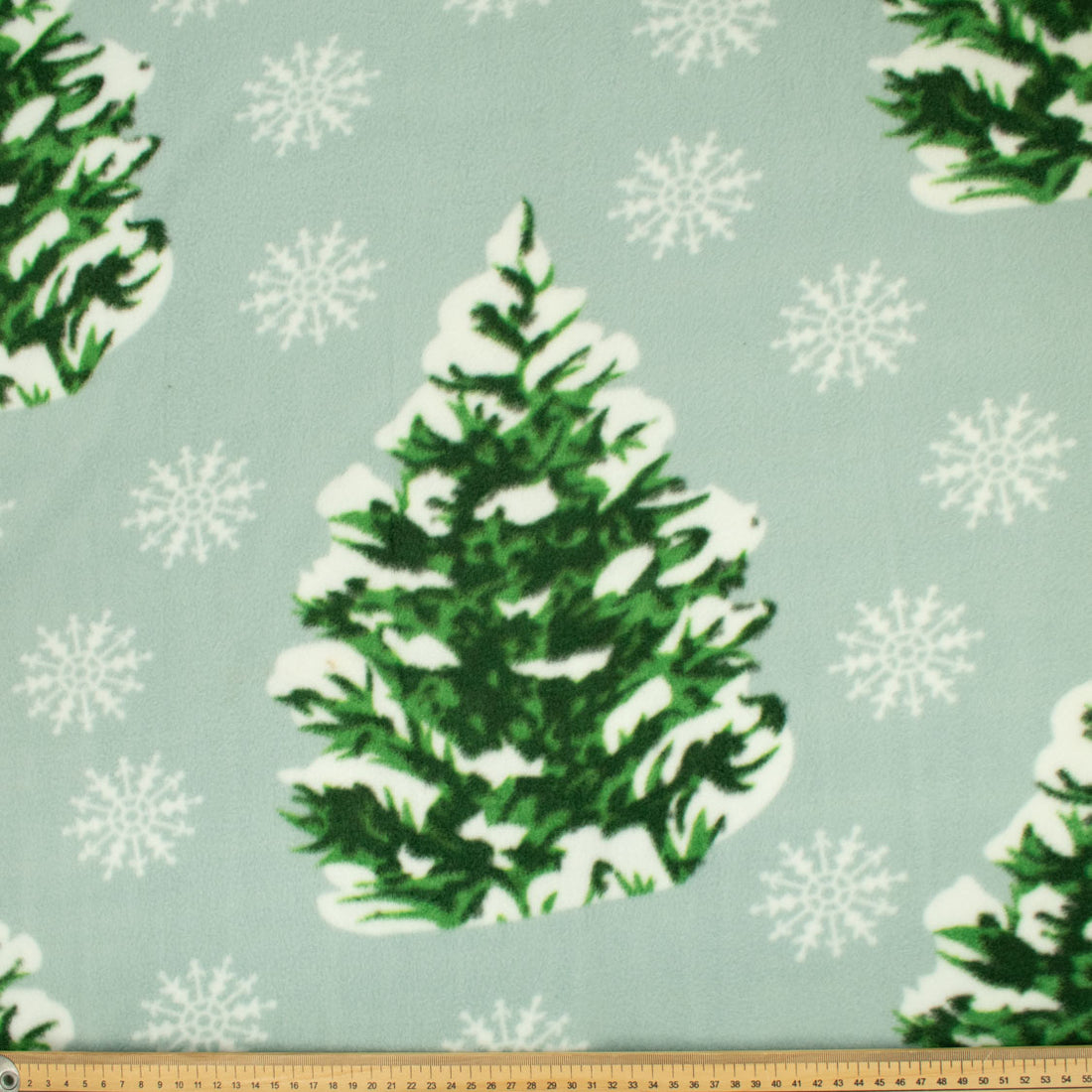 Snow & Pine Trees on Mint Printed Polar Fleece DSN #15