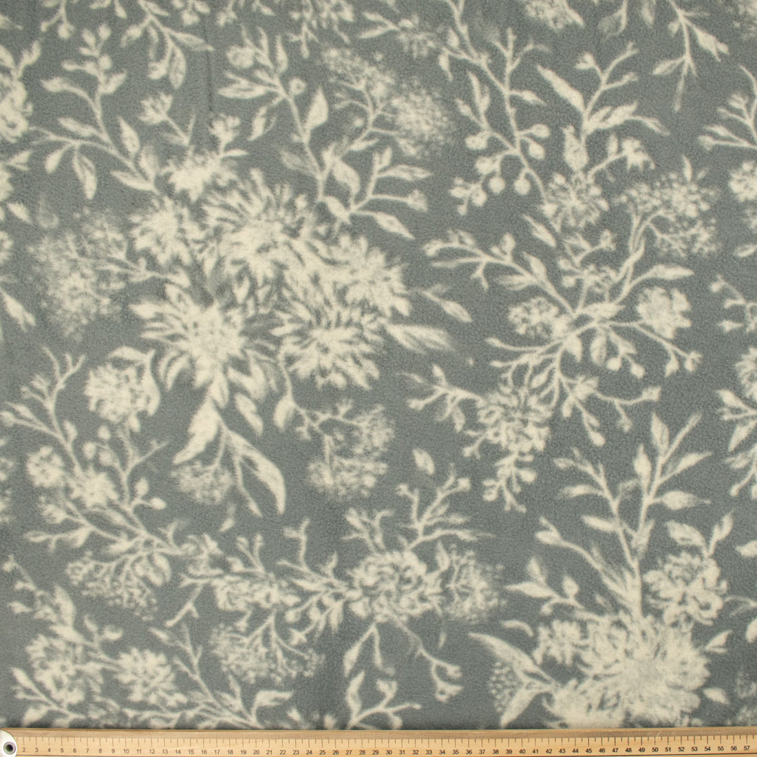 White Flowers on Grey Printed Polar Fleece DSN #32