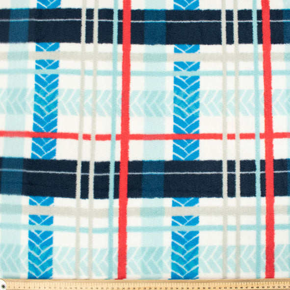 Blue & Red Checks on White Printed Polar Fleece DSN #53