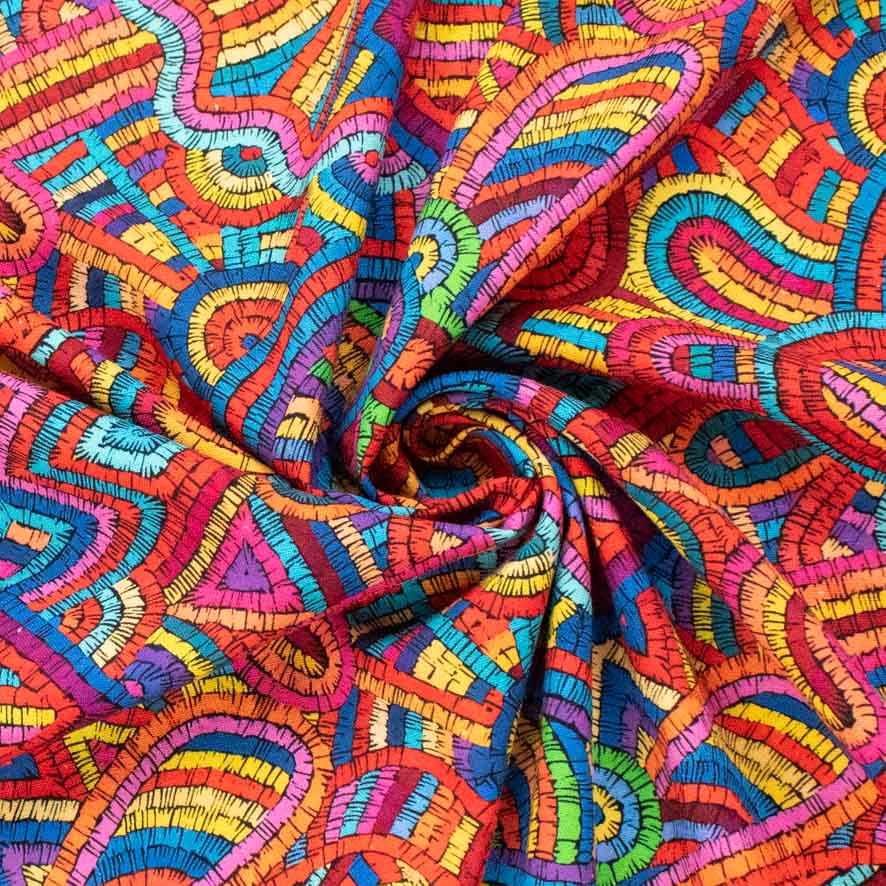Linen Rayon Digital Print Design-3 Multicolour Paisley Mosaic