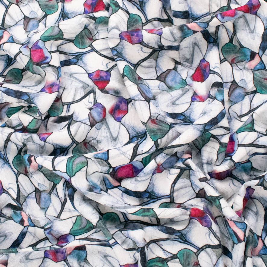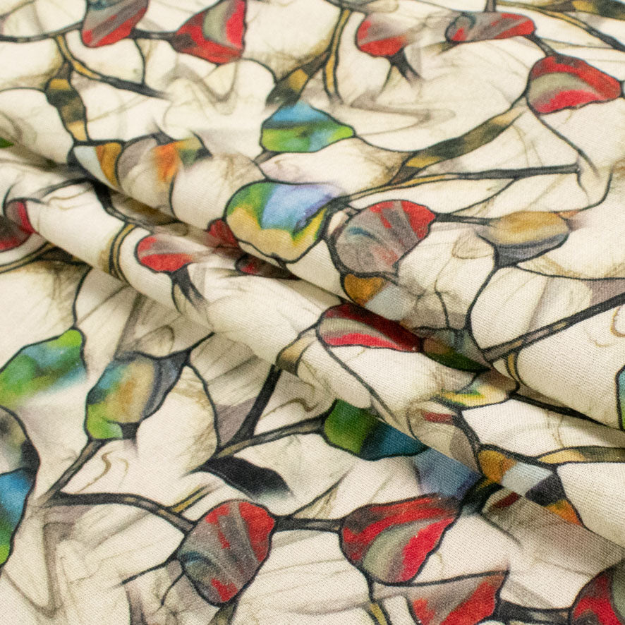 Linen Rayon Digital Print Design-4 Red & Green Abstract Leaves