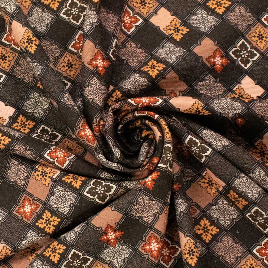 Linen Rayon Digital Print Design-7 Brown Diamond Grid