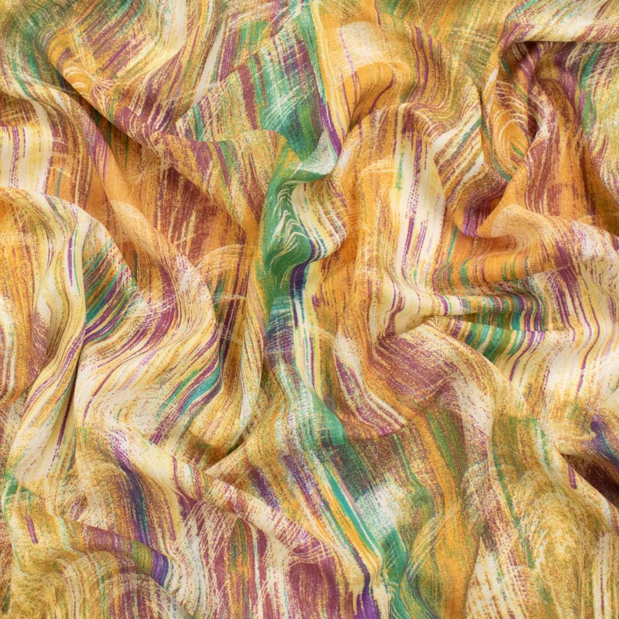 Yellow & Green Abstract Printed Linen Look Crepe
