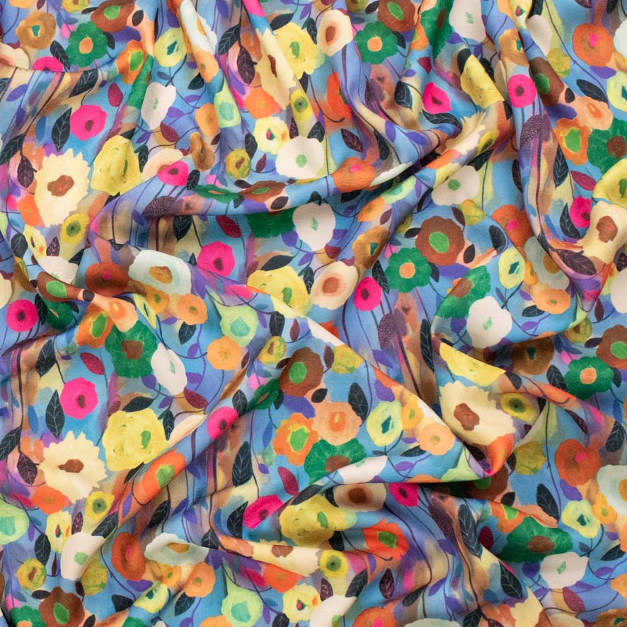 Pearl Silk Crush Digital Prints Design 1 Blue Impressionist Bloom