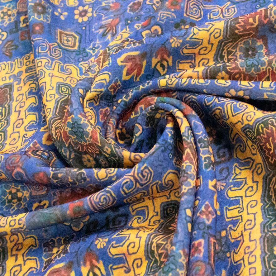 Pearl Silk Crush Digital Prints Design 9 Yellow Eastern Diamond on Blue
