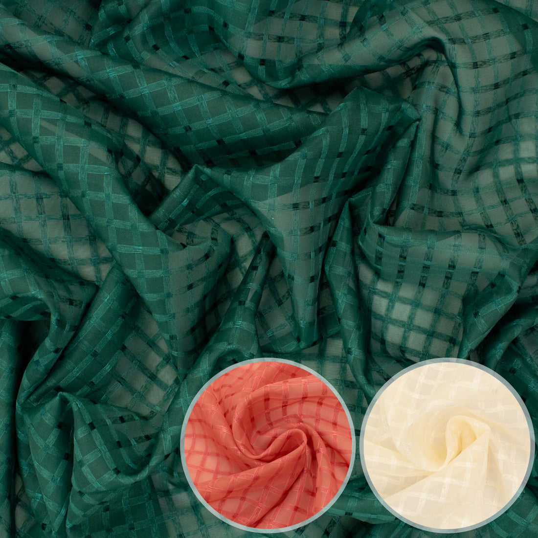 Width: 150CMWeight: 126GSMComposition: 100% Polyester Check Chiffon is a lightweight, airy fabric with classic check pattern. It offers a graceful...