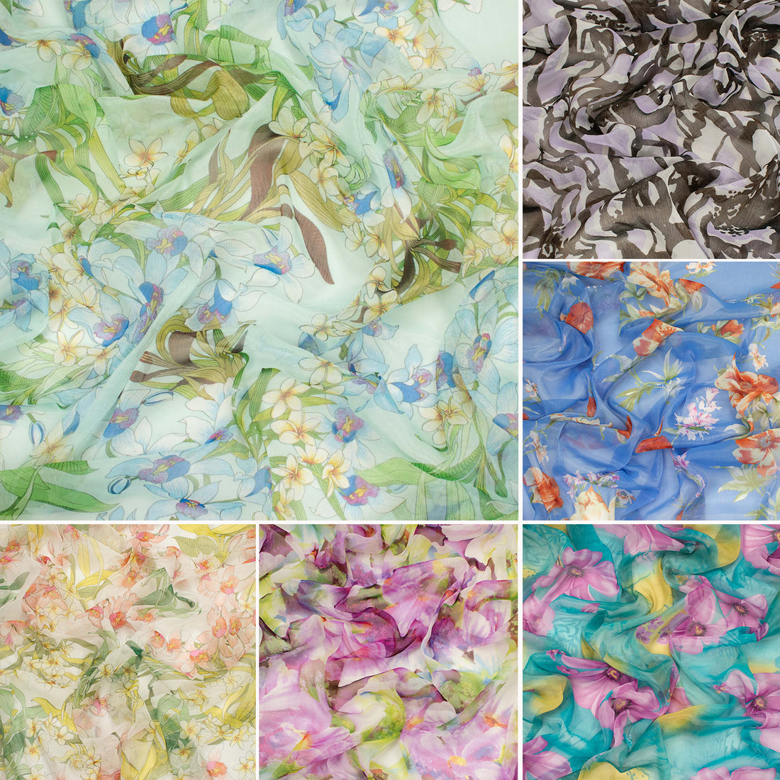 Content: 100% PolyesterWidth: 150CMWeight: 70GSM A beautiful selection of printed chiffon in assorted florals, abstracts and geometrics...