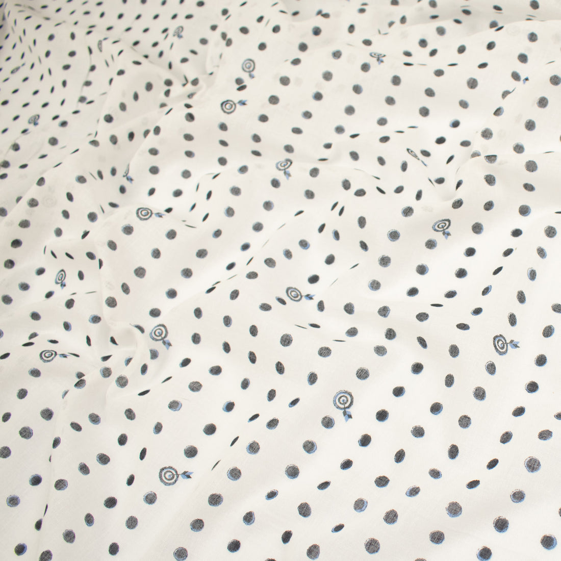 Printed Cotton Voile Design-9 Black & Blue Dots on White