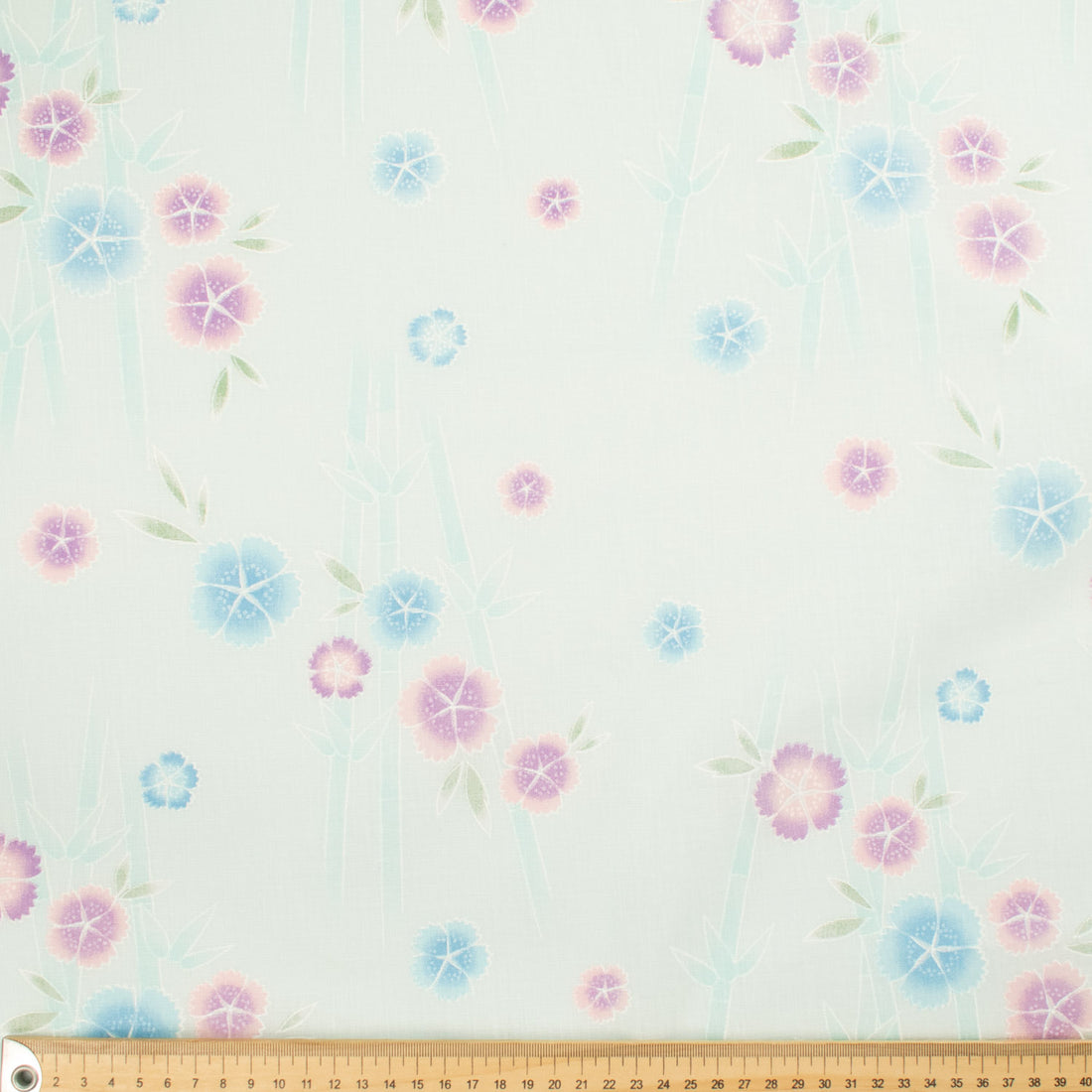 Printed Cotton Voile Design-26 Blue, Purple & Pink Convolvulus Flower on White