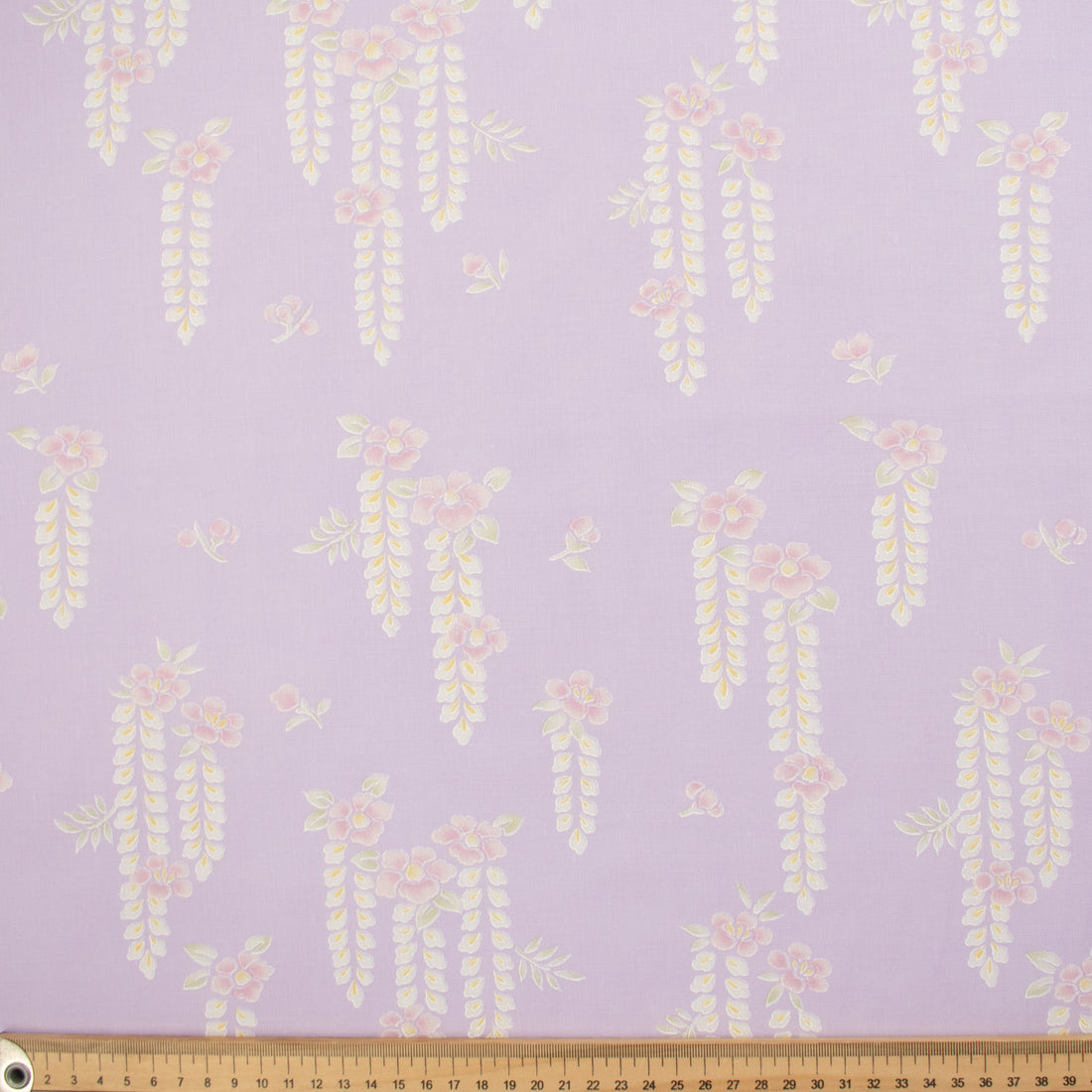 Printed Cotton Voile Design-1 White & Pink Flower Vines on Lilac