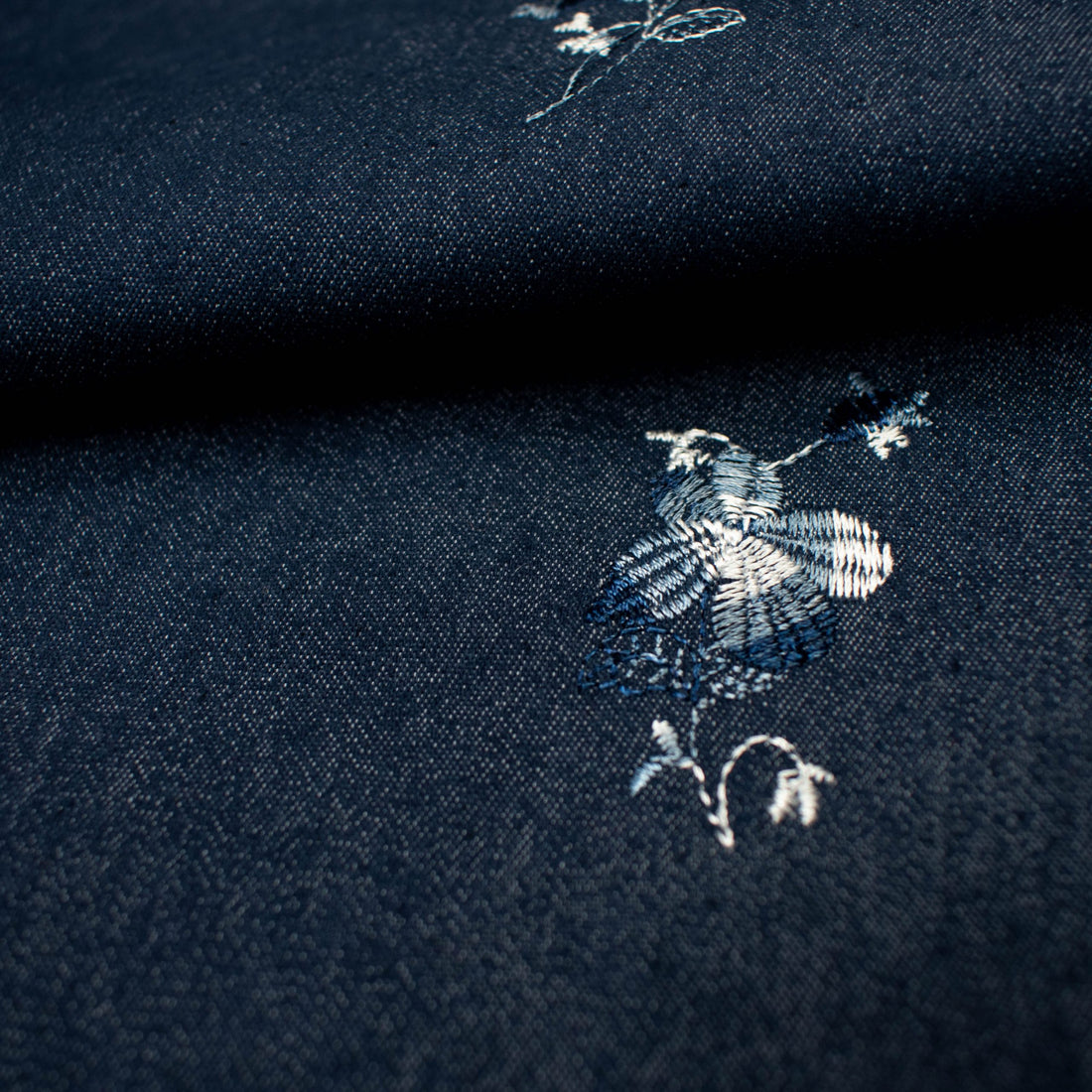 Content: 100% CottonWidth: 59”/150cmWeight: 272GSM Embroidered Denim ideal for Summer Shirts, Tops, Skirts and Dresses. Embroidered Denim...