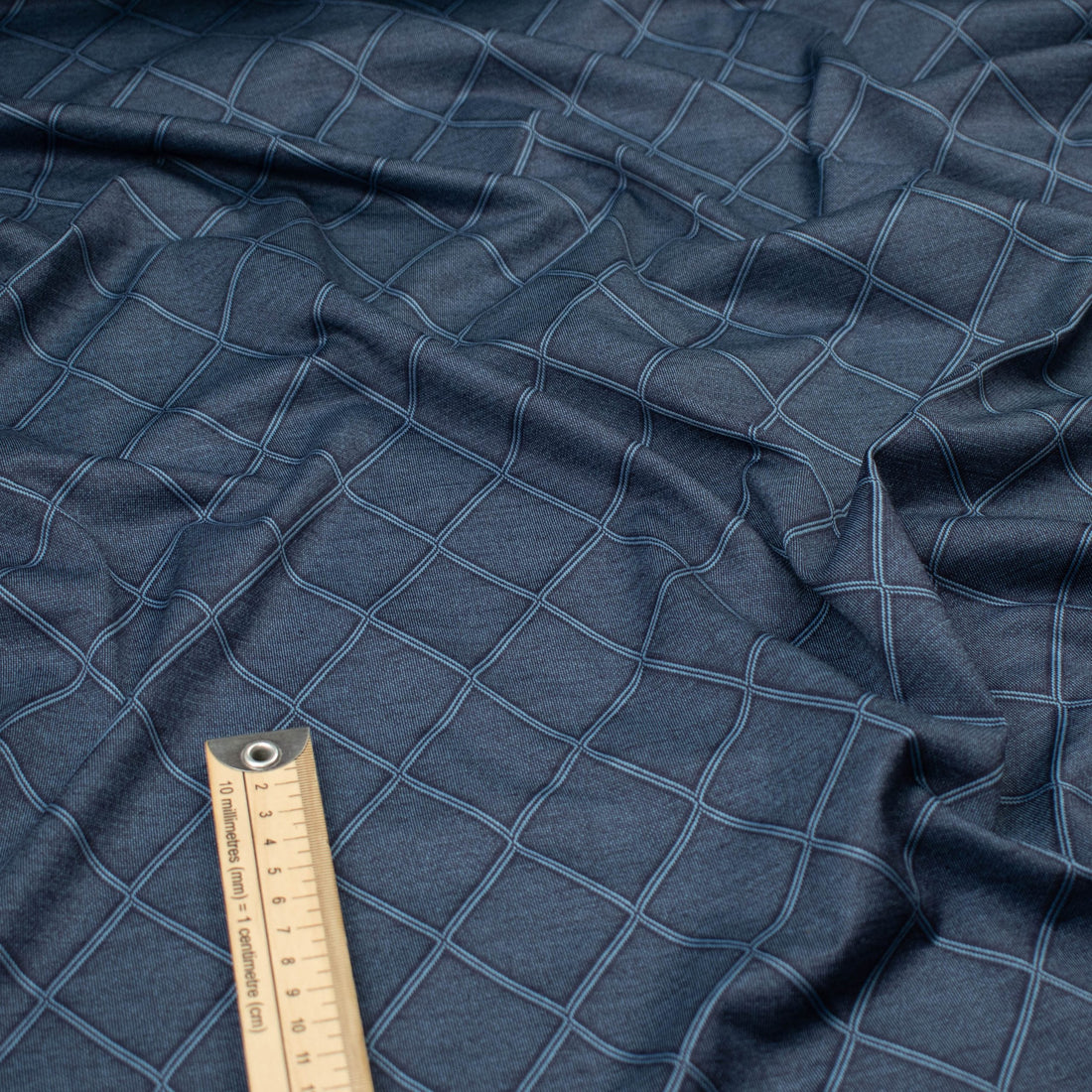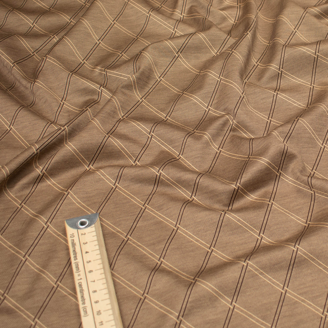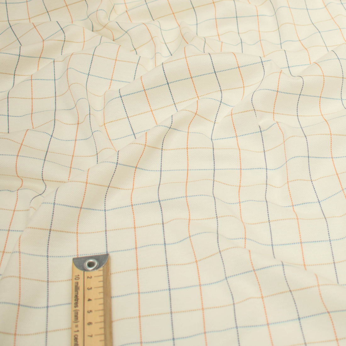 Printed Knits Design-2 Orange & Navy Checks on Cream