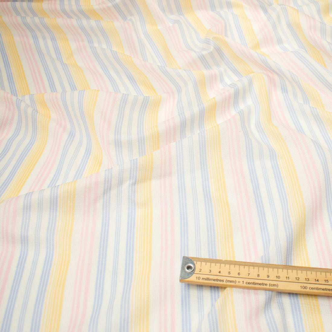 Printed Knits Design-197 Baby Pink, Blue and Yellow Stripes
