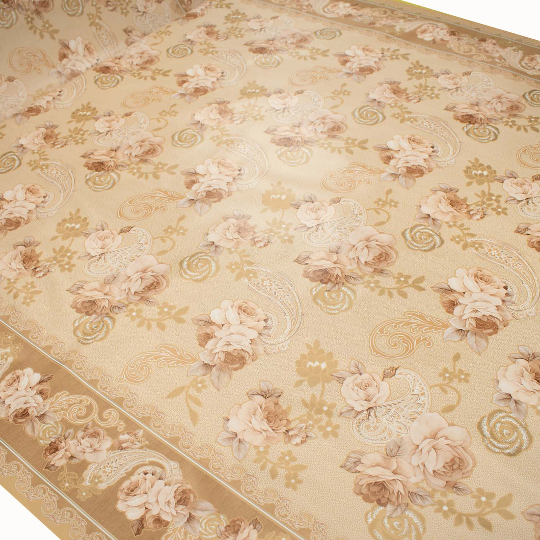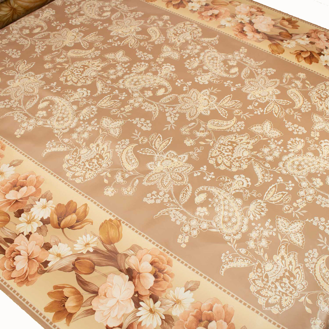Latte Rose & Paisley Plastic Tablecloth Fabric