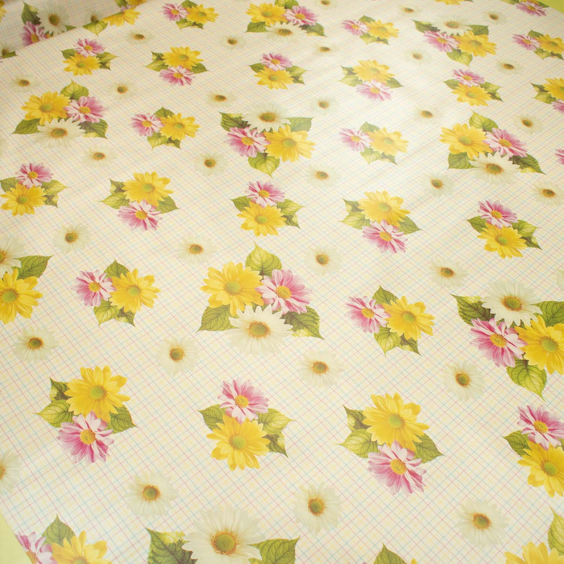 Daisy Flowers on Yellow Checks Plastic Tablecloth Fabric