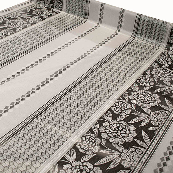 Black Flowers & Stripes Plastic Tablecloth Fabric