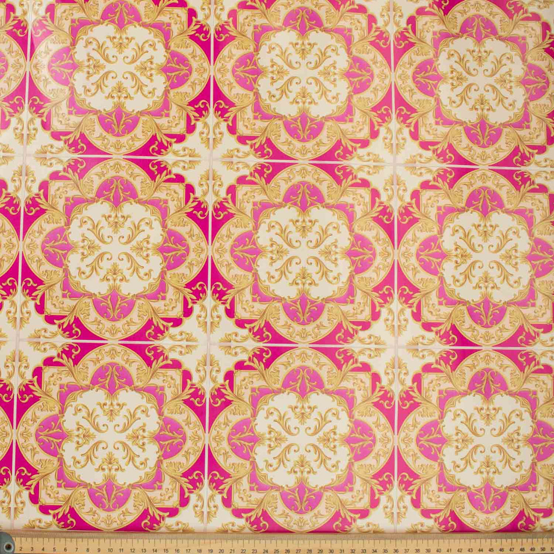 Gold & Pink Vintage Flowers Plastic Tablecloth Fabric