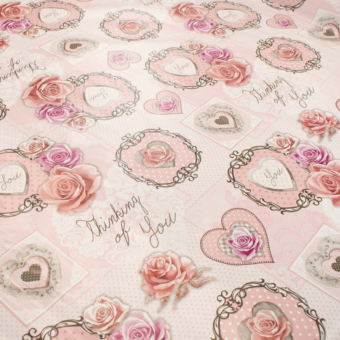 Pink Heart & Roses Plastic Tablecloth Fabric